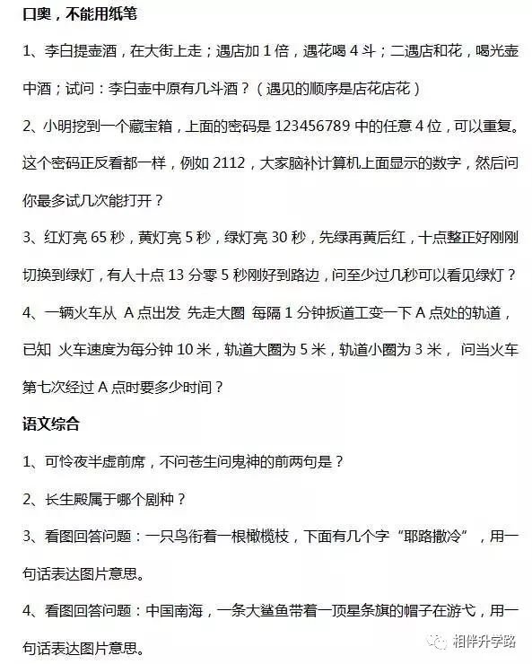 • 数学: 口奥题,难度不高,主要是有心算能力。