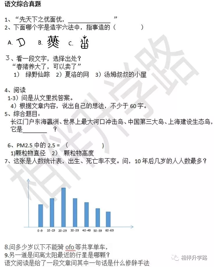 而神仙学校照常。照样张灯结彩招徕全城牛娃,进行大比拼。可见它的江湖地位,非任何学校可比。收到面单的考生绝大部份集中于上海这些名小学:上外附小、明珠、福山、世外,盛大等。这些来考的学生,都异常优秀。要把他们分出个胜负来,可见题目的广度与深度以及灵活度。