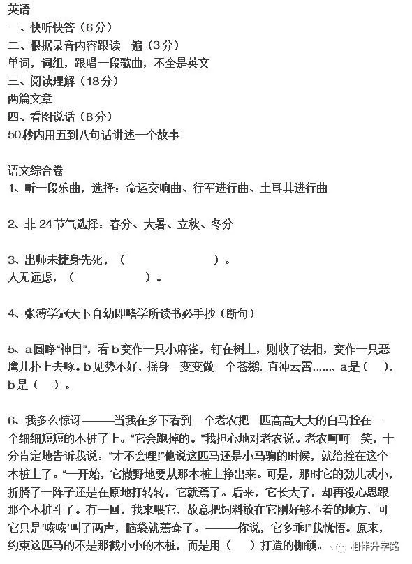 每年上外附中的题目绝不公开,下面流传的都来自于考生的回忆。